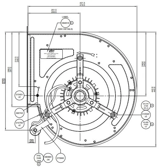 • Aanzuiging: Dubbel aanzuigende centrifugaalventilator
